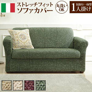 イタリア製 ストレッチ フィット ソファカバー アーム付き 1人掛け用 肘あり の解説 最どんな形にも合わせやすい! かぶせたら余った部分をソファのすき間に押し込むだけ♪ タテヨコ伸縮自在のストレッチ素材...