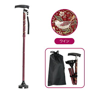 モリス 折りたためるあんしんステッキ。歩くたびに気持ちが華やぐ!お出かけが楽しくなる!「いちご泥棒」柄のオシャレなステッキ。■大人気のウィリアム・モリスの「いちご泥棒」デザイン。