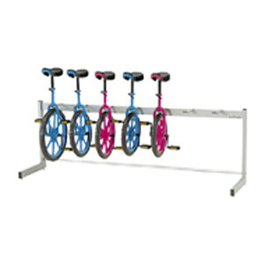 片面5台掛(14〜20インチ対応型)●下部ゴム付●スチール入り非塩ビ樹脂コートパイプ(直径28mm)一輪車別売 壁面ピッタリ収納の片面5台掛低学年にも簡単整理の置き式タイ...