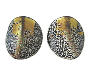 商品説明名称 一点モノタックピン男女兼用(アクセサリー) 説明 オリジナルカットデザインです。総銀箔張りの銀線仕立て金箔も散らしています 。何度も重ね焼きした大山阿津子オリジナルです。男女兼用です。銅板にガラス質の釉薬を盛