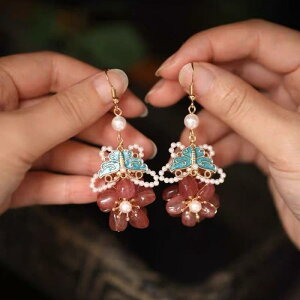 ・カテゴリ: ピアス・イヤリング・素材: 925銀・加工方法: 象嵌玉・形状: 幾何学模様・スタイル: 中国風・スタイル分類: 文芸レトロ・デザイン要素: 蝶・デザイン要素分類: 動物・対象: 女性