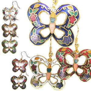 オリエンタルな蝶々モチーフ七宝焼き♪ 七宝焼きの素敵なピアスです。 ハンドメイドのぬくもりが感じられます。 キュートなちょうちょうをモチーフがゆれ、可愛い印象になりますね。色のバリエーション豊富でどの色にしようかまよっち