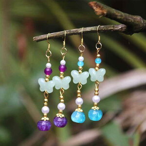 ・素材: 銅合金・加工: 電鍍・モチーフ: 動物、干支・カラー: ピンク、ブルー・デザイン要素: 蝶・スタイル: 新中華風・スタイル区分: 個性派トレンド・カテゴリ: 耳飾り