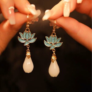 ・カテゴリ: 耳飾り・主な素材: 925シルバー・スタイル: 中国風・テイスト: レトロアンティーク・柄: 蓮、睡蓮・対象: 女性