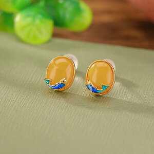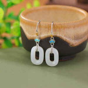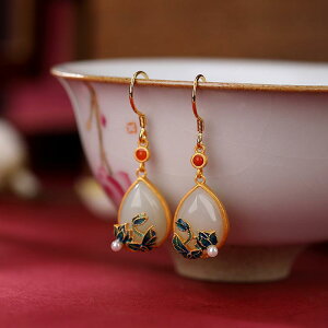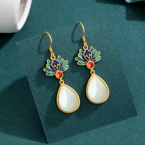 ・カテゴリ: 耳飾り・スタイル: 国潮、文芸レトロ・主な素材: 925シルバー・加工: 玉細工・デザイン: ティアドロップ・柄: 自然モチーフ・カラー展開: ゴールド、和田玉・対象: レディース