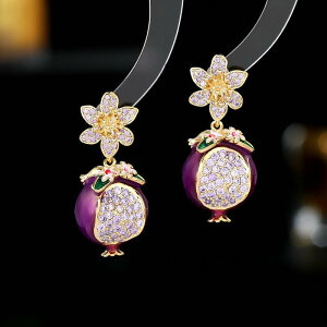 ・主な素材: 銅・カテゴリ: ピアス・イヤリング・加工: ジルコニア装飾・カラー展開: レッド、パープル・スタイル: 個性的なトレンド・モチーフ: フルーツ、植物花卉・対象: レディース