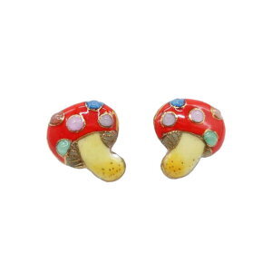 【UncleZ】七宝焼き ピアス <サイズ> 約2cm×2cm、重さ:1つあたり約4g <素材>銅板・七宝釉薬・ガラス粒子・金液 日本製 **七宝焼ならではの色とつや!個性的なきのこピアス** 鮮やかでポップな色合いのきのこを...