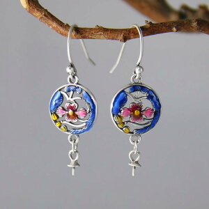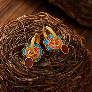 ・素材: 銅・形状: 幾何学・加工: 滴油加工・流行要素: 円形・スタイル: 新中式・耳飾り金具: 琺瑯滴油彩絵・スタイル分類: 個性派・特徴: 軽奢、高品位、民族風・カテゴリ: 耳飾り・対象: 女性