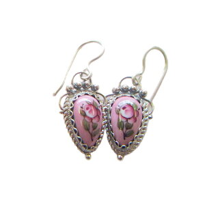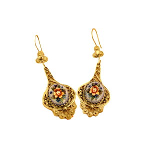 上げます。 デザイン:小さな花の模様が描かれています。 メイン装飾部分のサイズ 約1.5cm ピアスの全長 約3.2cm 制作:ростовская финифть