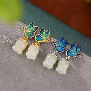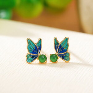 ・カテゴリ: ピアス・イヤリング・対象: レディース・スタイル: 文芸レトロ・主な素材: シルバー・純度: 925シルバー・加工方法: 翡翠象嵌・柄: 蝶モチーフ