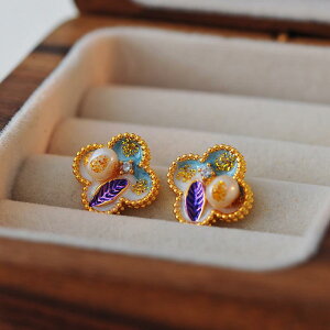 ・カテゴリ: 耳飾り・対象: 女性・素材: 銅・形状: 幾何学・加工: 電解メッキ・モチーフ: 四つ葉のクローバー・スタイル: 中国風・テイスト: 文芸レトロ