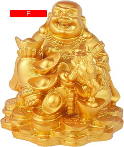 ・材質:樹脂・サイズ:高さ9.5cm×巾14cm×奥行9.7cm・ゴールドの布袋様は重量感があり見栄えがいい。布袋は開運、家庭円満の神として広く民間に信仰されています。金色は金運アップパワーがあるともいわれています。・笑門来福・夫婦円満