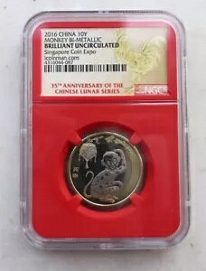 NGC BRILLIANT UNCIRCULATED China 2016- Monkey - Singapore Int'l Expo Sample Coin商品について循環/非循環 非循環単位 10元組成 バイメタル2016年認証...