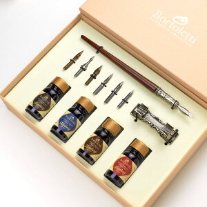 *ボルトレッティ SET No18【セット内容】・木製軸ペン 1本・ペンホルダー 1個・ミニインク 4色(ブラック、ブラウン、ブルー、レッド)・アンティークニブ 6本※アンティークニブのデザインは選べません...