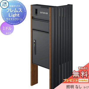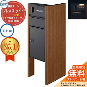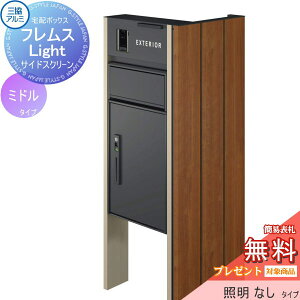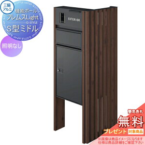 門柱 ポスト 機能ポール 機能ポール フレムス Light サイドスクリーン付きタイプ たて板格子タイプ 本体:木調色 サイドスクリーン:木調色 照明内臓 【S型】宅配ボックス:ミドル メール便や宅配...