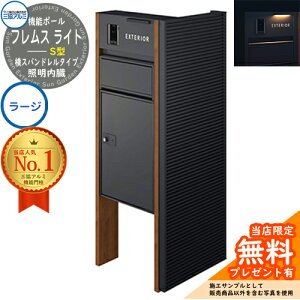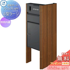 門柱 ポスト 機能ポール 機能ポール フレムス Light サイドスクリーン付きタイプ 横スパンドレルタイプ 本体:木調色 サイドスクリーン:形材色 照明内臓 【S型】宅配ボックス:ラージ メール便や...
