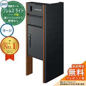 機能ポール フレムス Light サイドスクリーン付きタイプ 横スパンドレルタイプ 本体:木調タイプ サイドスクリーン:形材色 照明なし 【P型】宅配ボックス:ラージ メール便や宅配便に対応し機能と意匠性をアップさせたフレムス...