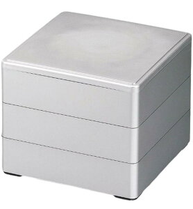 商品説明 洋の空間ににも溶け込むスタイリッシュな和の美。 どんな場所においても美観を損なわないシルバーの三段重。 つい金属と間違えるよう