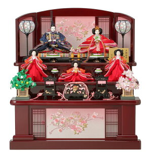 華やかな三人官女を合わせました。お道具も細部までこだわって製作され、見応え十分な仕上がりとなっております。飾り映え抜群の三段飾りは引き出し式のたっぷり収納となっており、オフシーズンには中にお人形やお道具がしまえる優れものです...