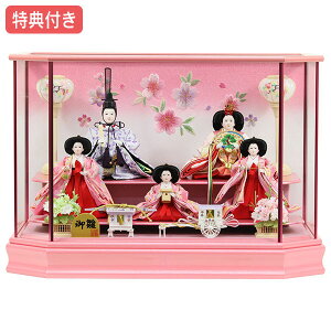 ※お人形の手持ちの道具、頭飾りは付属します サイズ(cm) 間口46×奥行36×高さ40 仕様 ケース飾り 五人飾り 三段飾り 雪洞点灯 お道具:お駕籠(おかご)、御所車、桜橘。