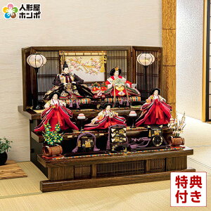 ※お人形の手持ちの道具、頭飾りは付属します サイズ(cm) 間口90×奥行85×高さ92 仕様 五人飾り 三段飾り 雪洞点灯(コードレス) お道具:三方、菱台(菱餅)、高坏(たかつき)、お駕籠(おかご)、重箱、御所車...
