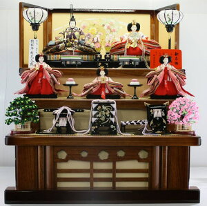 サイズ:間口75×奥行56×高さ73.5(cm) 雛人形 ひな人形 雛 三段飾り 五人飾り 下記より商品説明・・・・・ 全国の有名専門店、有名百貨店でおなじみの人形工房のひとつ、千匠人形工房の三段飾りの登場です。赤と黒のコントラストが...
