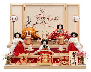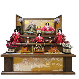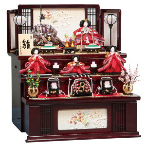 [サイズ(cm)] 間口90×奥行77×高さ91 [仕様] 五人飾り 三段飾り 雪洞点灯(コードレス) お道具:三方、菱台(菱餅)、高坏(たかつき)、お駕籠(おかご)...