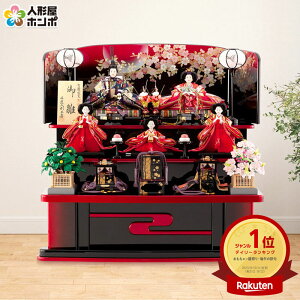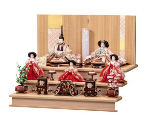 商品名雛人形 ひな人形 コンパクト 木目 三段飾り 収納タイプ 宴桜 芥子親王小芥子三人官女 三段収納飾り 五人飾り 木製三段飾り 収納型 赤 紺 工房天祥オリジナル おしゃれ かわいい インテリア 初節句...