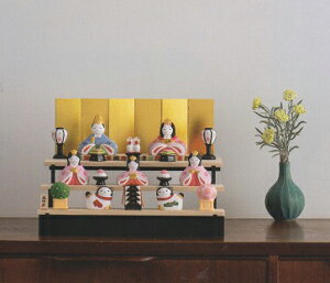 場所をとらない超コンパクトタイプの段飾り…彩り豊かな晴れのあるお雛様です。【サイズ】全体(横幅26×奥行21.5×高さ20cm)女雛(高さ5.5cm) 陶器 お雛様・三人官女・付属品一式・屏風・飾り台・箱入り 愛知県瀬戸市 製作面での...