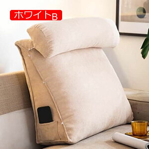 ◆◇◆売れている秘密◆◇◆ 三角形のデザインがおしゃれで他にはない背もたれクッション!自分の好みに合わせて3段階で調節可能な筒型枕が付いています? ミニポケット付きサイドでスマホやリモコンを収納できる便利なアイテム