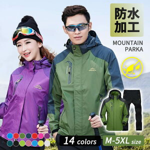 大雨でも快適 アウトドアジャケット 上下セット メンズ 防水 レ