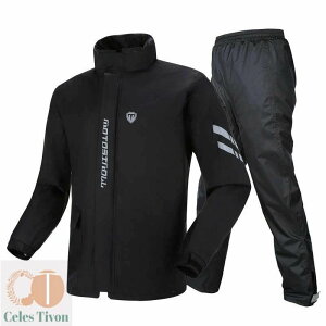 バイク用レインスーツ 収納袋付き メイン素材: ポリエステル+TPU【防水性抜群】表地は防水生地で、耐水圧は10000mmです。縫製の部分も防水処理で、水が弾き、細かく水は殆ど通さない!バイク走行中に、雨による水濡れなどからしっかり守っ