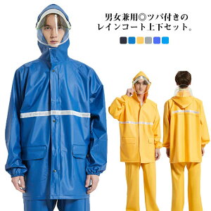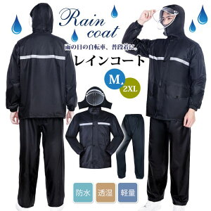 男女兼用レインコート 上下セット 背中に反射テープ加工されており、夜道でも安全に! 安全で便利で、脱ぎやすいです。 裏地は全部メッシュ素材を使用し、柔らかくて、肌に優しいし、即乾性と吸汗性も抜群です。...
