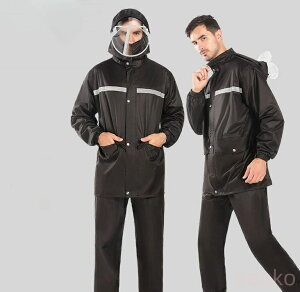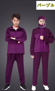 男女兼用レインコート 上下セット背中に反射テープ加工されており、夜道でも安全に!安全で便利で、脱ぎやすいです。透明な二重つば!飛沫防止、風よけ、雨よけ防止、雪よけ防止などの機能があります。環境に優しい新型防水PVC素材で作