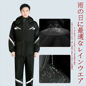 男女兼用レインコート 上下セット 背中に反射テープ加工されており、夜道でも安全に! 安全で便利で、脱ぎやすいです。 裏地は全部メッシュ素材を使用し、柔らかくて、肌に優しいし、即乾性と吸汗性も抜群です。...
