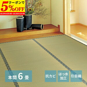 サイズ 三六間6畳(約273×364cm) 組成 表地=い草(九州産) ※双目織 ヘリ=ポリプロピレン、ポリエチレン 原産国 日本製(純国産)■い草生地の両面に撥水加工を施しています。
