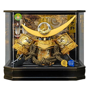 ケースのサイズ間口43×奥行32×高さ45cm梱包サイズ:間口49×奥行40×高さ51cm重量:6kg兜竜虎 金 上杉謙信の兜日月前立竜吹き返し・ブラックゴールド鉢黒袱紗ケース黒金ぼかし塗り(広島県府中産木製枠)六角アクリルケースカブ...