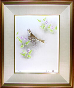 現代日本画壇の正統として、また花鳥画の第一人者として高い評価と支持を受ける上村敦之。 千羽を超す鳥たちを自ら飼育する鳥類研究家としても大変高名です。 こちらの作品は、オリジナル石版画集「鳥の四季」の中の一作を額装したものです。 <