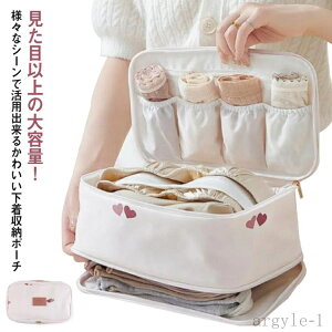 見た目以上の大容量!様々なシーンで活用出来るかわいい下着収納ポーチ豊富な収納で、かさ張りがちな下着などの衣類をスッキリと整頓できちやいます!ショーツなど丸めて収納するのにちょうと良いサイズのポケットや、プラジャーの形