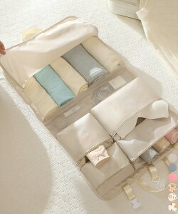 ■商品の特徴着替え衣類ラック 下着収納袋 旅行インナー収納バッグ 出張アレンジケース 小物入れ 仕切りバッグ 折りたたみ収納グッズ下着や靴下の収納に便利な吊り下げ式ランジェリーポーチ。フック付きで、ホテルの部屋やクローゼット