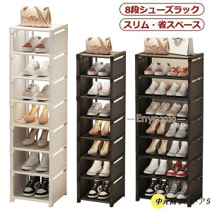 「8段シューズラック」:全高さが120cmでスリムです。狭い玄関でも省スペースで使えます。 「プラスチック製」:ほかの素材に比べて手に入れやすいし、移動も簡単に実現します。また、水や汚れに強いのも特徴で拭き取りのみでお手入れ完了。