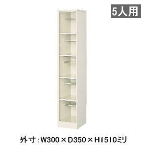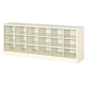 外寸:W1488×D330×H1090(mm) ボックス内寸:W220×D315×H230(mm) 材質:スチール、紛体塗装 質量:46.1kg カラー:ホワイトグレー 段:中棚付き6列