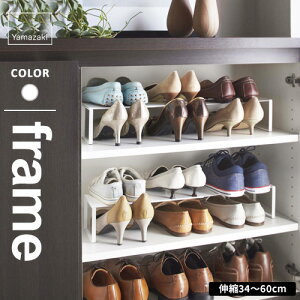 サンダルからブーツまで、靴の高さに合わせて棚の高さを組み換えできるシューズラック。靴が見やすく取り出しやすいオープンタイプ。