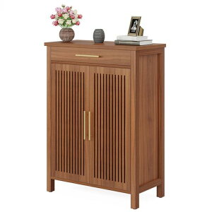 シューズボックス 下駄箱 シューズキャビネット スリム シューズラック 4段 靴箱 靴収納 扉付き 大容量 玄関収納 超薄型 おしゃれ 靴収納 キャビネット オープン&クローズ収納 省スペース 天然竹製...