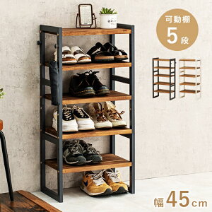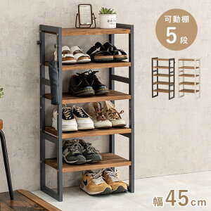 ダークグレー 高さ92cm 白 おしゃれ 5段 オープンラック 収納棚 ホワイトウォッシュ 幅45cm 高さ調節 下駄箱 玄関収納 シューズラック