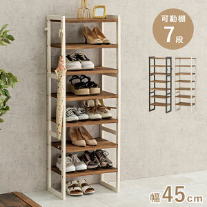 商品名:シューズラック 可動棚7段 幅45cm カラー:ダークグレー/ホワイトウォッシュ 生産地:中国製 サイズ:(約)幅45(フック含む47)×奥行28×高さ128cm<...
