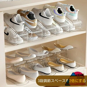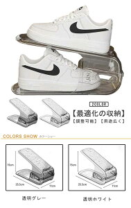 ホルダー2個セット。透明なデザインで中身が一目でわかり、どんな種類の靴でもきれいに収納できます。高さ調整機能付きで靴のサイズに合わせて調
