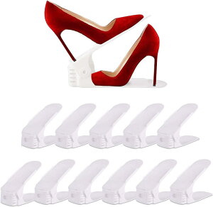 省スペース設計:ダブル層構造により、従来の靴立てよりも2倍の靴を収納できます。狭い玄関先や収納スペースに最適です。 調節可能の幅:靴のサイズに合わせて幅を自由に調節できます。男女の靴、子どもの靴、さらにはハイヒールやブーツにも対応可能...