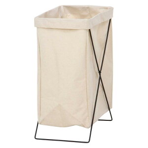 不二貿易(Fujiboeki) ランドリーバスケット スリム 幅24×奥行35×高さ52cm アイボリー 洗濯カゴ 折りたたみ ゴミ箱 キャンプ用 おもちゃ収納 内側撥水加工 31509折りたためるマ...