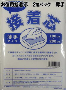 【5個】単位での販売となっております。 数量【1】でご注文いただきますと、5個でご用意させていただきます。 お徳用不織布接着芯 2mパック JF-3N(しっかりタイプ) サイズ:100cm×2m が5個セットになりました...
